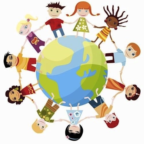 kinderen rondom wereldbol